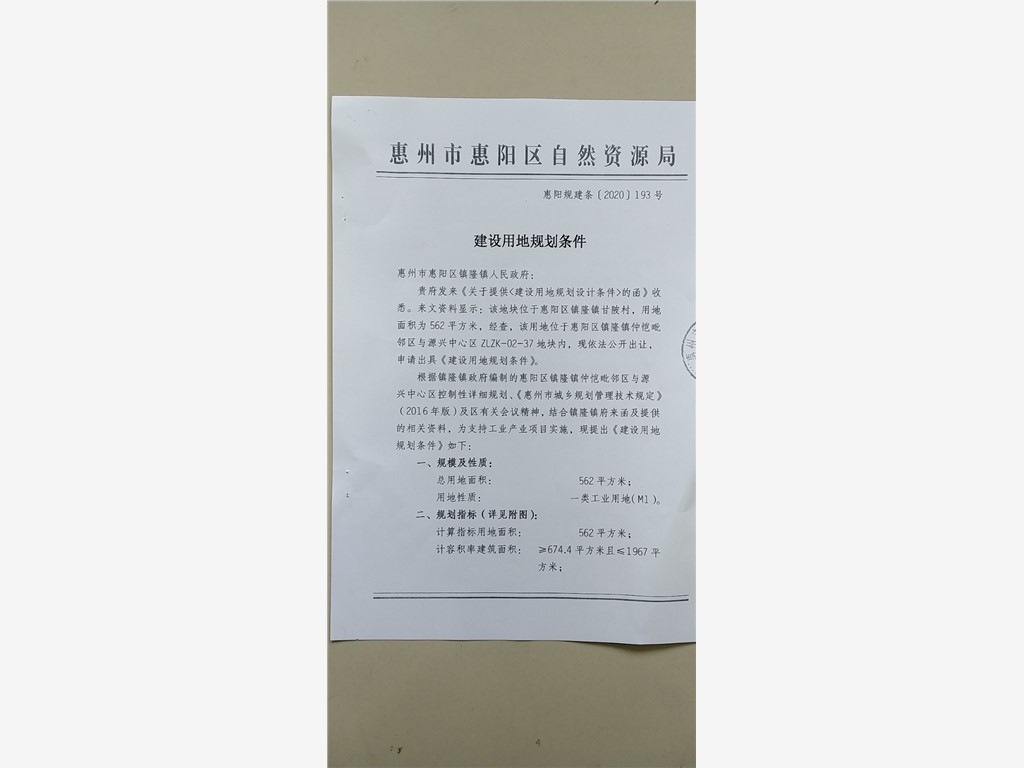 (三)依据惠阳规建条〔2020〕193号《建设用地规划条件》的规定及有关要求,该项目的建设必须遵照以下规划条件执行。