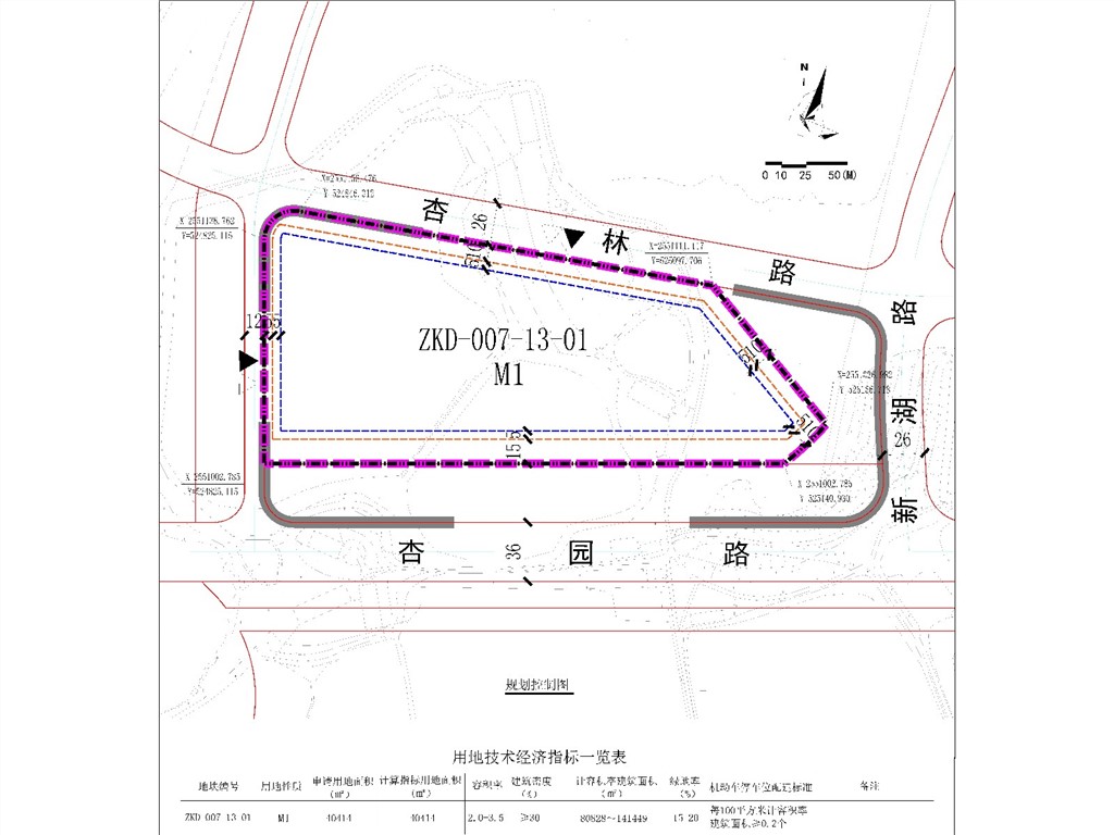 (四)地块周边情况:北侧为杏林路(26m),东侧为新湖路(26m),南侧为杏园路(36m),西侧为规划道路(12m);