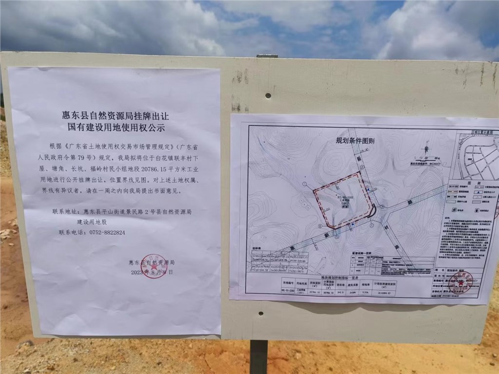 1、惠州市惠东县国有建设用地使用权网上挂牌出让公告(以下简称“出让公告”);