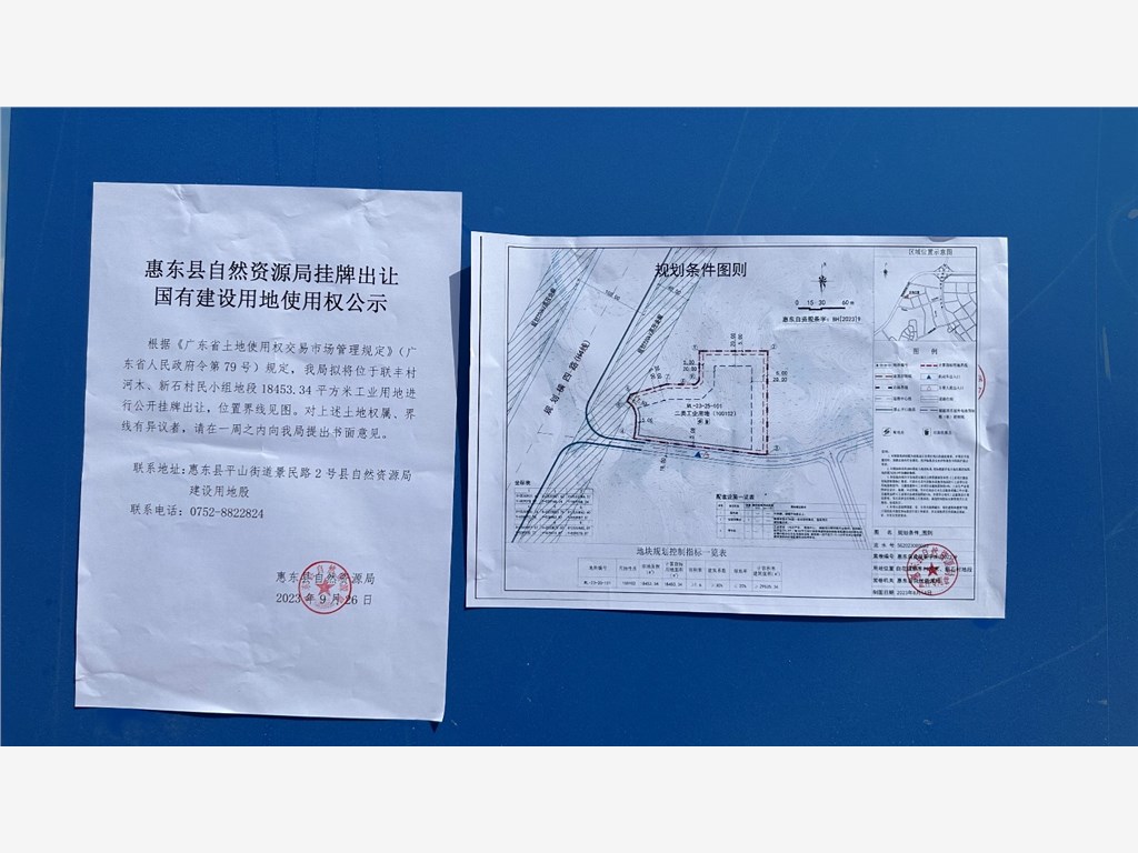 1、惠州市惠东县国有建设用地使用权网上挂牌出让公告(以下简称“出让公告”);